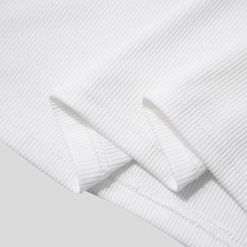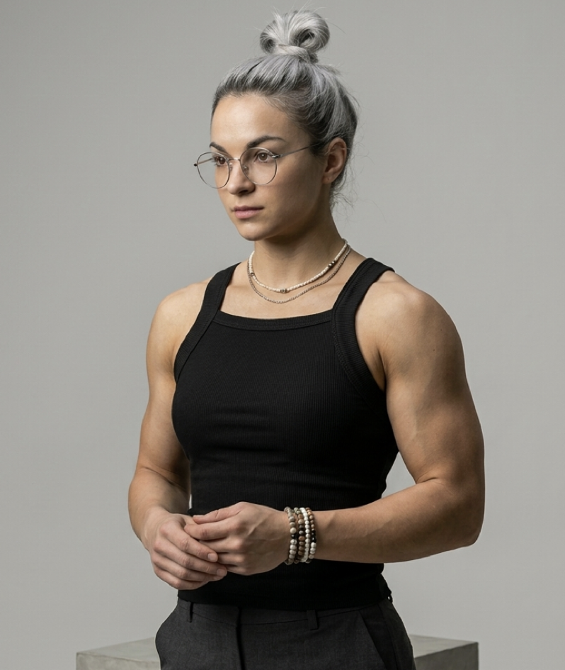 Le col haut et les épaules larges structurent la silhouette. Le rib stretch épouse les mouvements, tout en gardant une tenue impeccable. Chaque ligne est pensée pour durer, pour s’intégrer, pour affirmer.